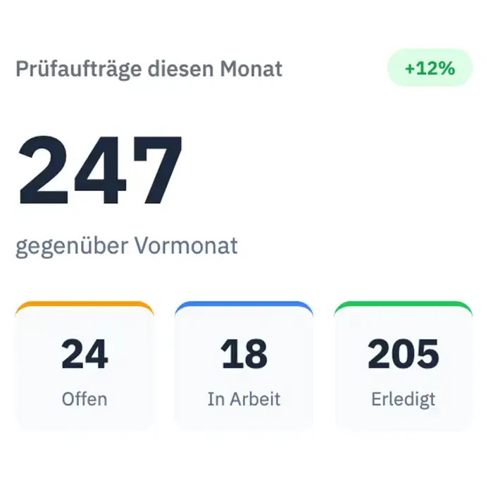 Prüfaufträge zentral erfassen, zuweisen und verfolgen – mit vollständiger Transparenz über alle Projekte.